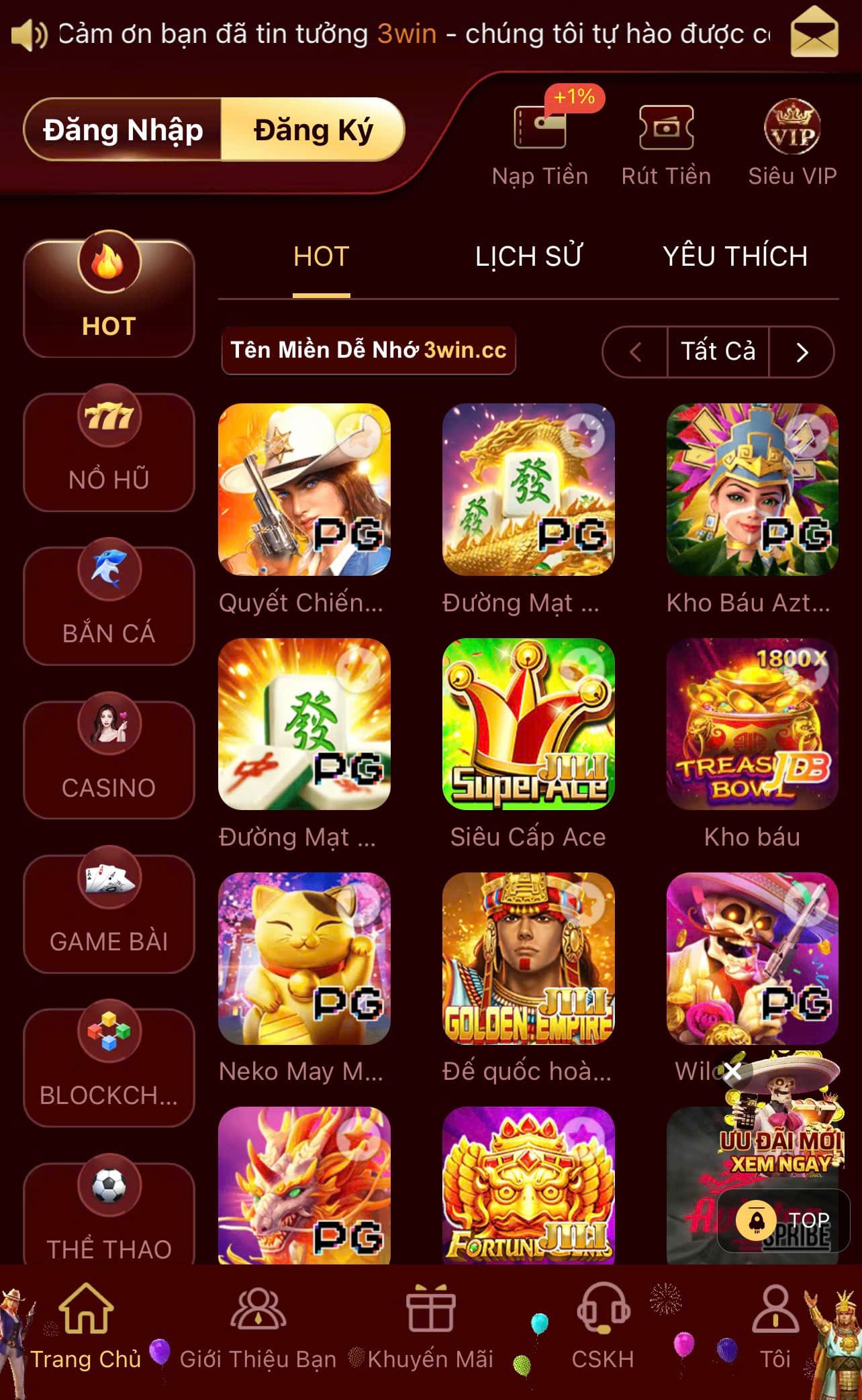 Nhà cái 3win09.com nâng cấp toàn diện, với giao diện đẹp mắt, cập nhật kho trò chơi cá cược hấp dẫn, tỷ lệ trả thưởng cao. Tham gia trải nghiệm không gian cá cược đẳng cấp.